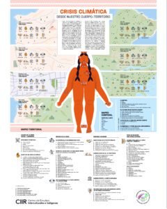 En octubre 2022 se inició un ciclo de formación con mujeres indígenas en colaboración con la CONAMUPUORI. Resultado de la primera Escuela de formación e incidencia con mujeres indígenas sobre cambio climático se construyó colaborativamente una cartografía crítica que muestra la visión del grupo sobre: las causas de la crisis social y ambiental; los efectos de la crisis en nuestros territorios y cuerpos, nuestras acciones, y la relación del grupo con otros actores vinculados a la crisis climática.