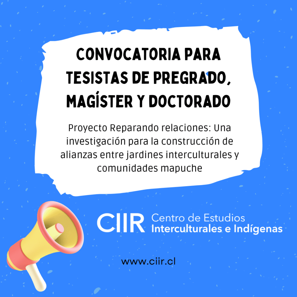 Llamado a tesistas proyecto Fondecyt “Reparando relaciones: una investigación para la construcción de alianzas entre jardines interculturales y comunidades mapuche”